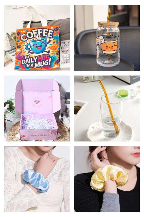 يحتوي على شنطة قهوة إصدار محدود، كوب لوكس، ٣ سكرنشيات حرير أصلية، وسفاطة بلوسوم الفاخرة — كل قطعة فيه تم اختيارها لتضيف سعادة حقيقية ليومها.